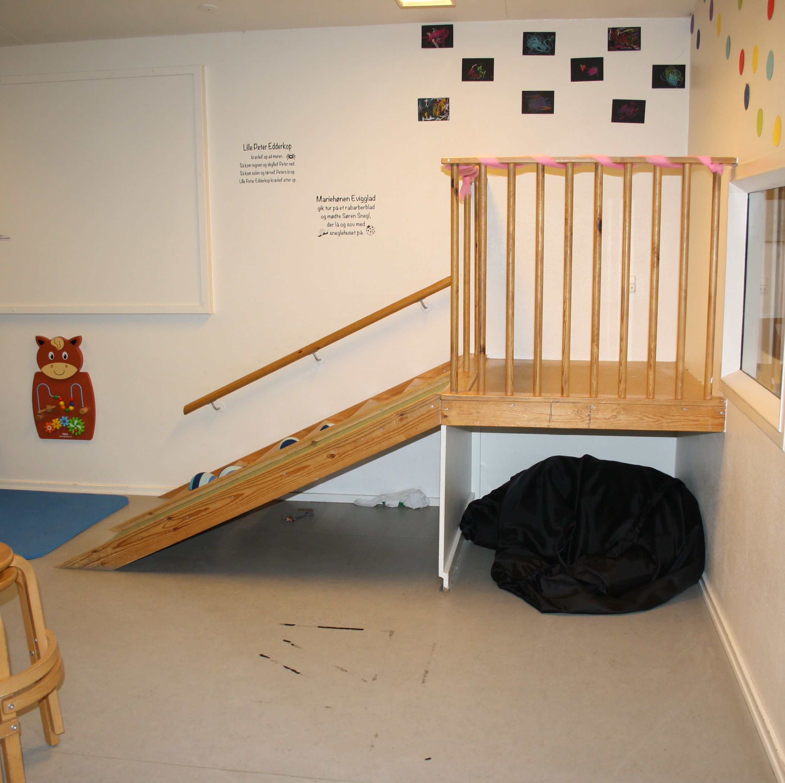 - et fælles motorikrum midt i huset, som omdannes til et ekstra basisgrupperum nogle måneder om året til storbørnsgruppen.