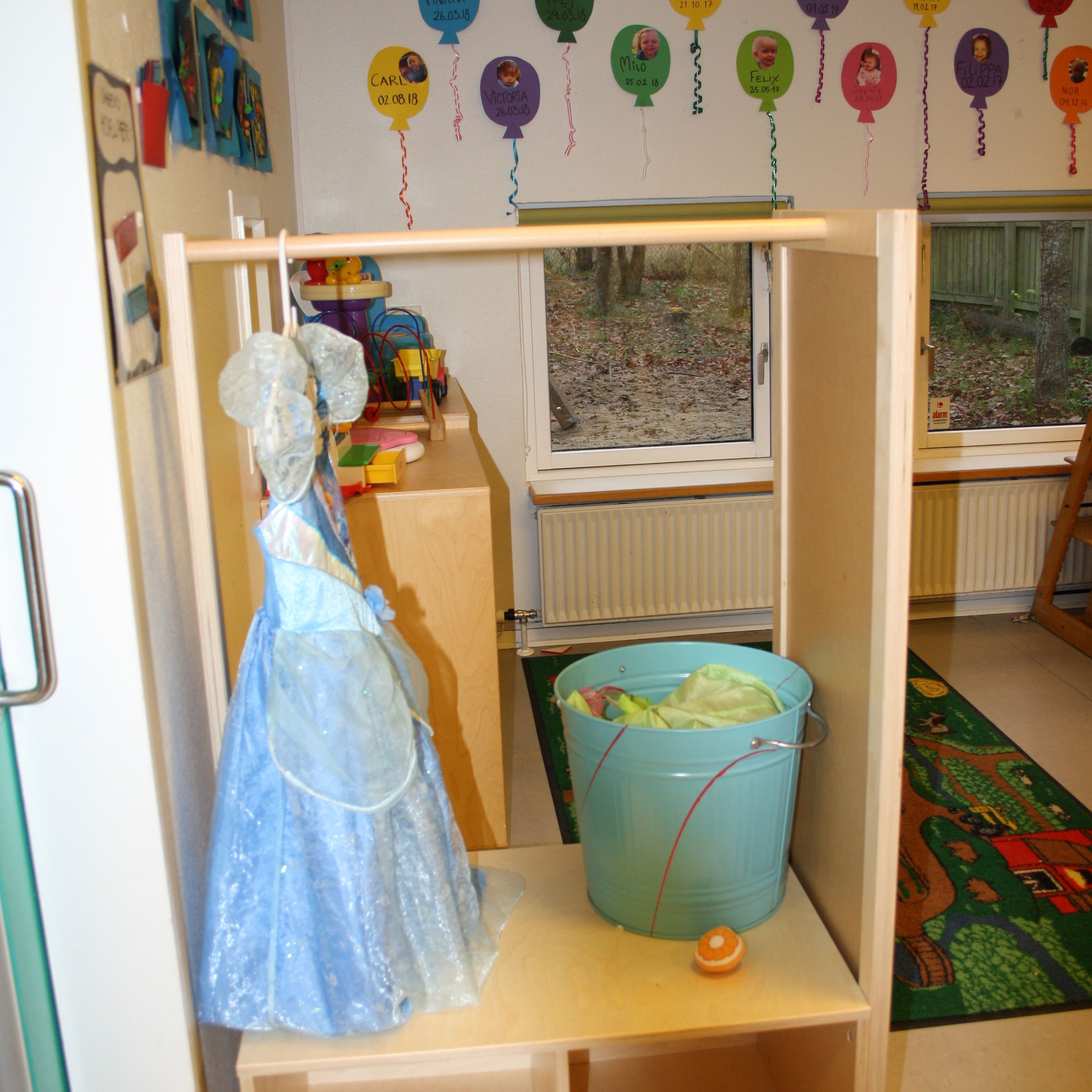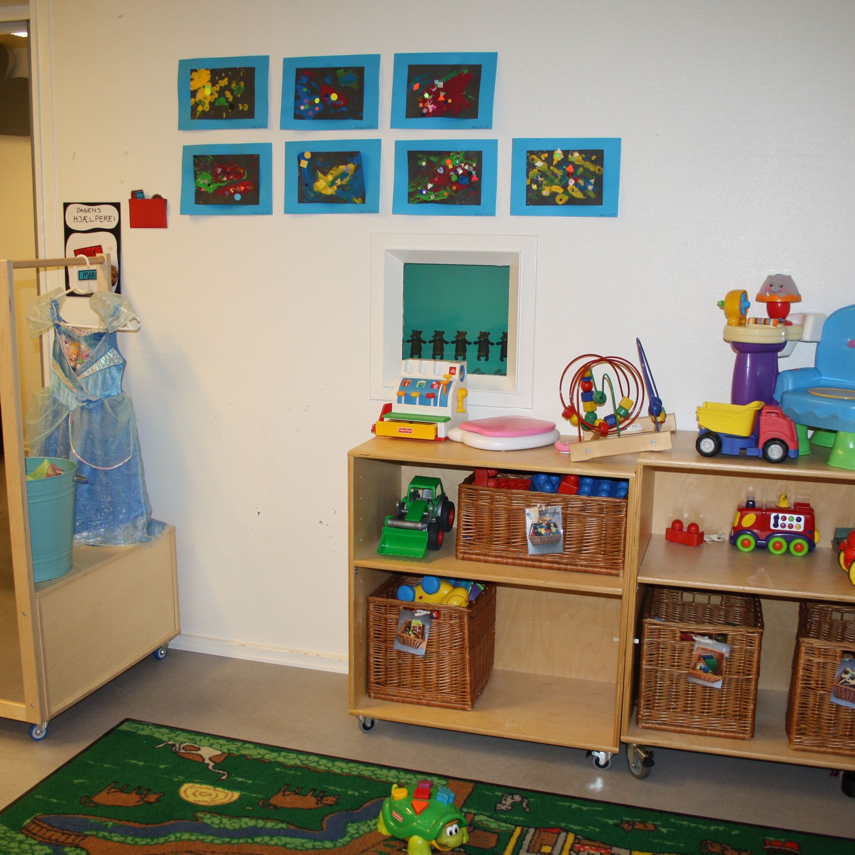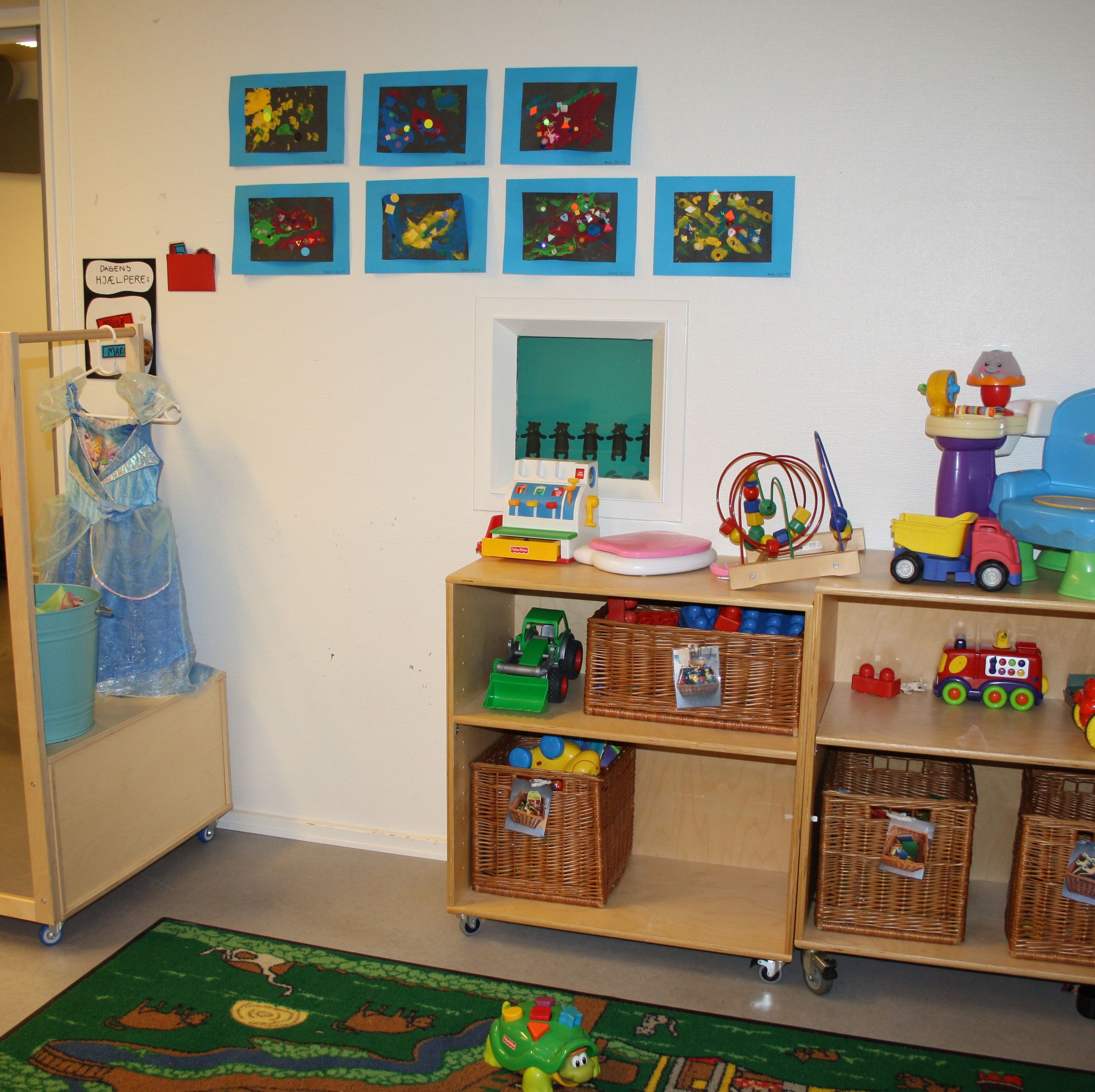 Børnene er inddelt i fem forskellige basisgrupper. Hver gruppe har sit eget rum. Derudover har vi: